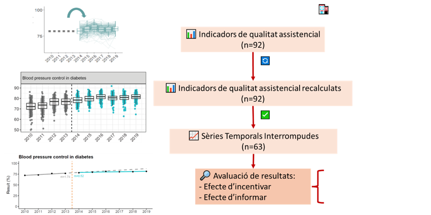 L‘estudi analitza l'impacte de dues estratègies per millorar la qualitat de l'atenció primària a Catalunya entre 2010 i 2019: la provisió d'informació en temps real als professionals sanitaris de l’ICS (a través de la plataforma online SISAP-ECAP) i els incentius econòmics per assolir determinats objectius de qualitat (mitjançant els contractes de direcció per objectius o DPOs).